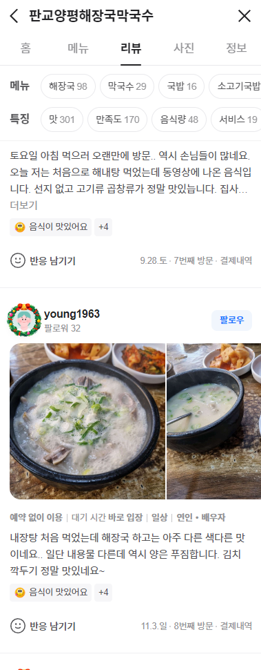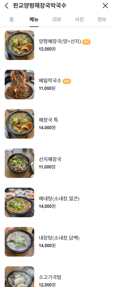 2. 판교양평해장국막국수 : 해장국 맛집, 내용물 푸짐함