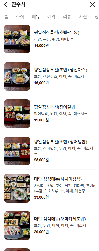 2. 진수사 : 일식당, 깔끔함, 점심특선이 괜찮음