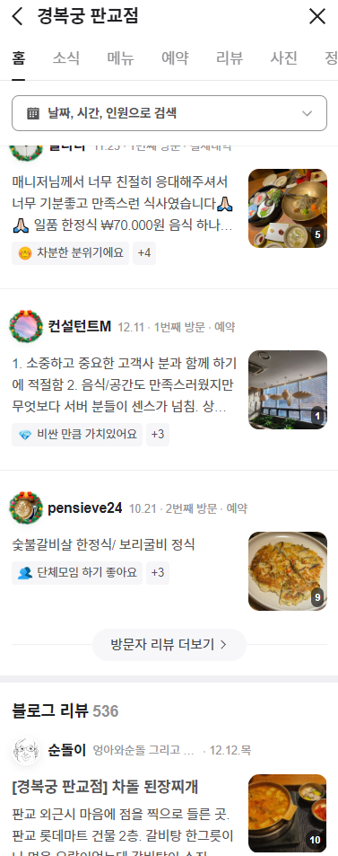 1. 경복궁 판교점 : 조용한 별도 공간, 맛있는 음식, 친절한 서빙