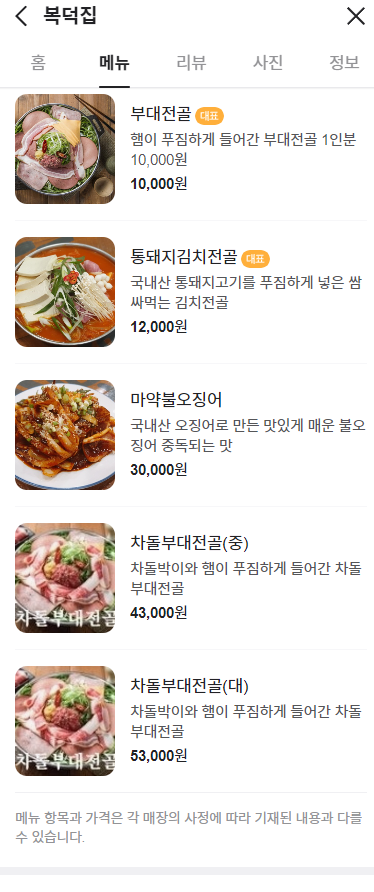 2. 복덕집 : 부대찌개, 김치찌개 등 전골류 맛집