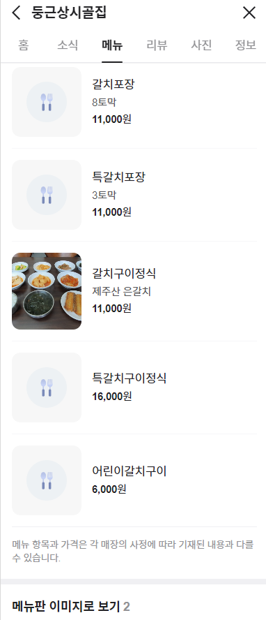 3. 둥근상시골집 : 갈치구이 한상
