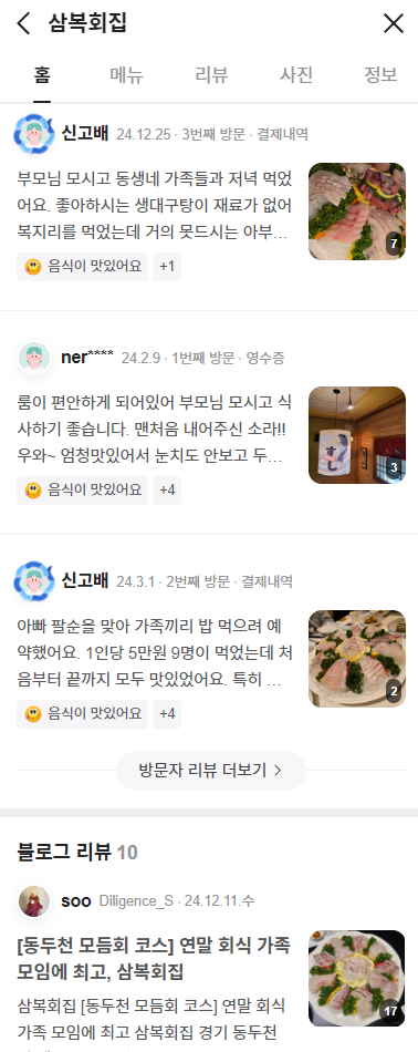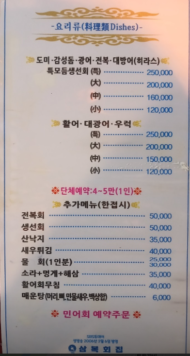 - 삼복회집 : 룸으로 되어 있은 코스요리 횟집