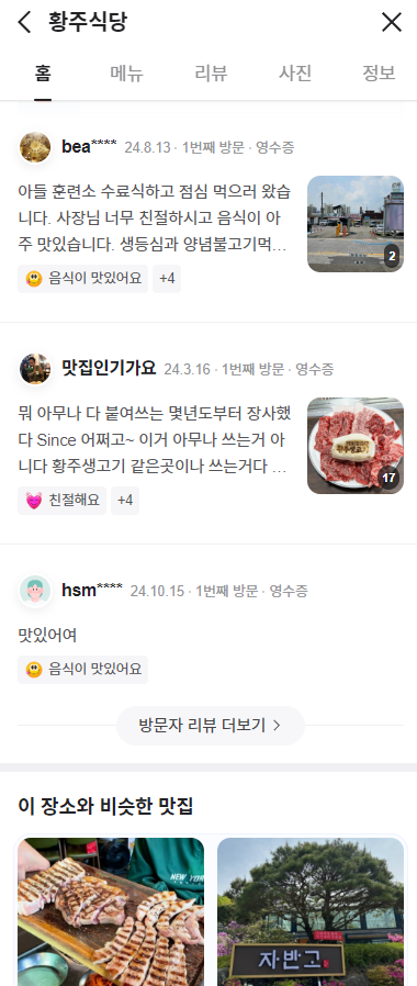 2. 황주식당 : 소고기 맛집, 백년가게인증, 쫄깃한식감 사르르 녹는고기