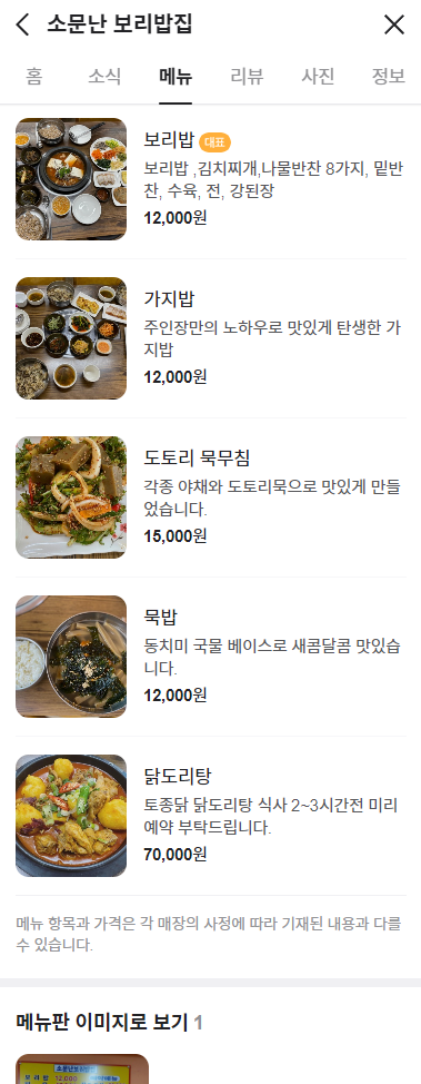 2. 여내울두번째집 : 메뉴 다양하고 음식이 맛있음. 서비스도 친절